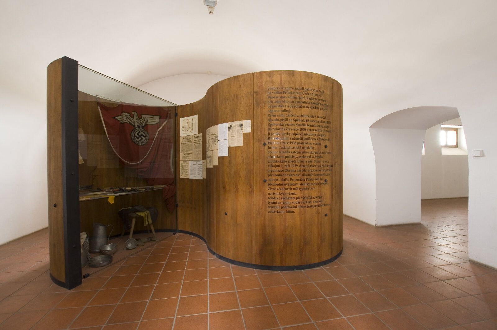 Připomenuta je zde i tragická doba nacistické okupace, kdy se v letech 1939-1940 stal Špilberk věznicí brněnského gestapa, odkud odcházeli čeští vlastenci do koncentračních táborů, káznic a na popraviště. Velmi zajímavými jsou ukázky předmětů dokumentující život ve věznici, stravování, zdravotní péči, práci vězňů a jejich výrobky.