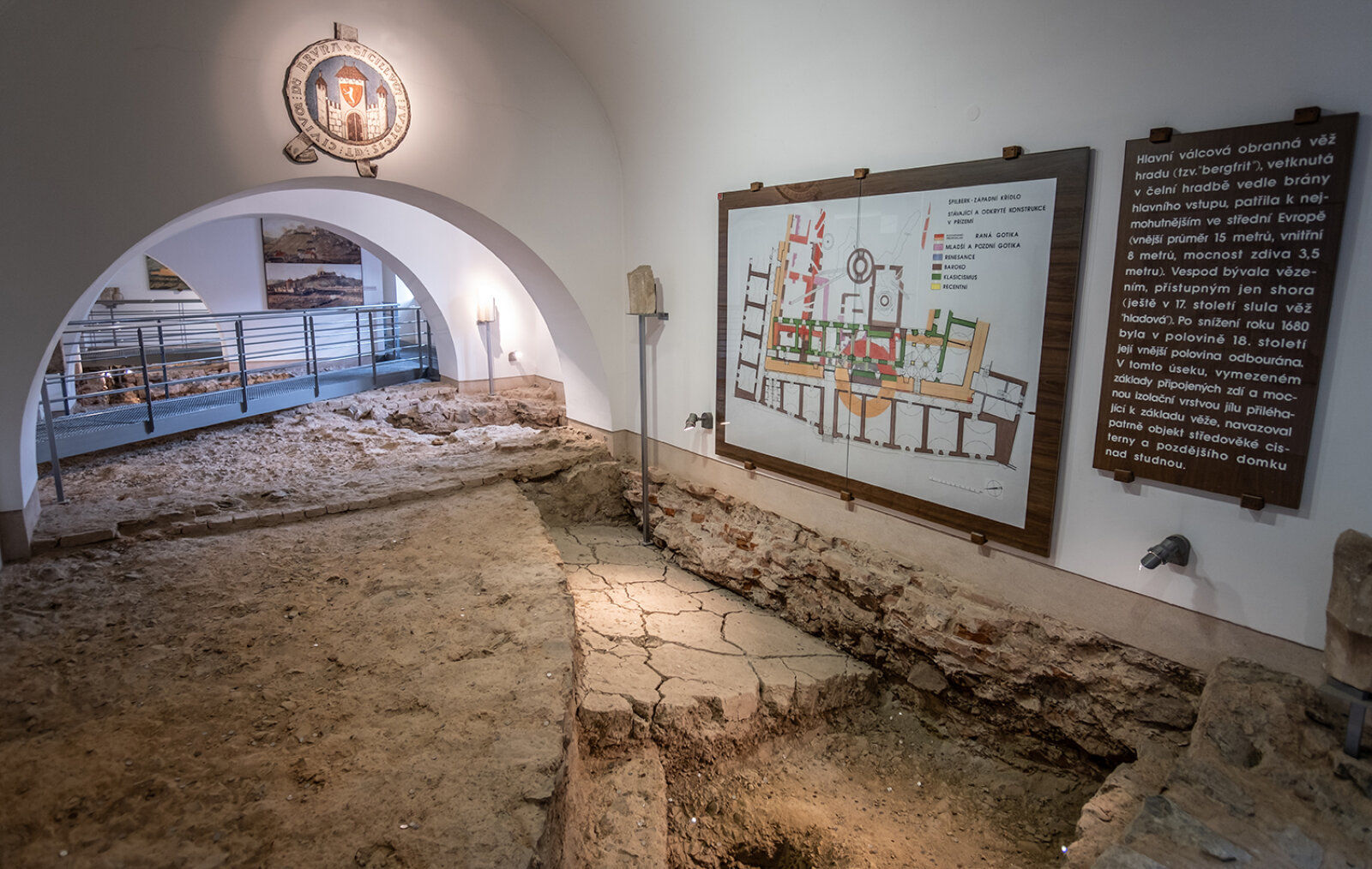 Stálá expozice přibližuje návštěvníkovi jednotlivé etapy stavebního vývoje a osudy Špilberku od jeho počátků až do vzniku jeho současné podoby v 19. století. Dílčí objevy jsou dokumentovány také odkrytými, konzervovanými základy středověkého zdiva a mohutné hlavní věže s původním vstupem.