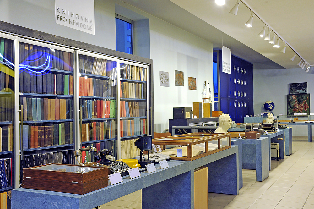 Expozice dokumentuje historii péče, výchovy a vzdělávání nevidomých a slabozrakých dětí, její součástí jsou i speciální učební pomůcky, tiskařská zařízení pro tisk slepeckým písmem, ukázky typických řemesel a zaměstnání nevidomých, elektronická zařízení umožňující nevidomým a těžce slabozrakým lidem využívat počítače, společenské hry a mnoho jiných specificky upravených předmětů každodenní potřeby. Pozoruhodným exponátem je dřevěná rozkládací mapa Josefa Bezecného z roku 1830. Jedná se o mapu tehdejšího Rakouska, ve které jsou vyznačeny obrysy jednotlivých států a hlavní město je vyznačeno tečkou.