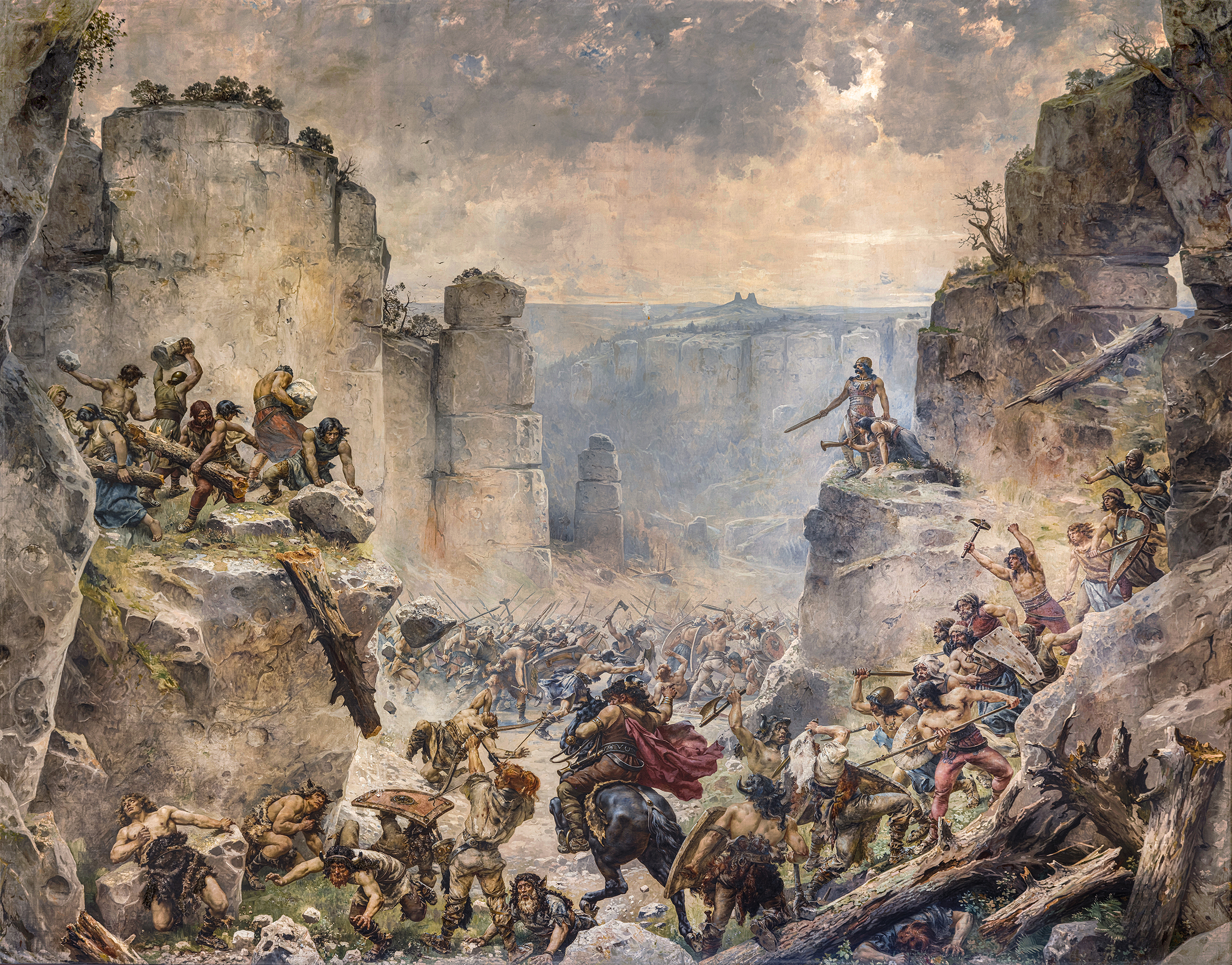 Dílo v jediném výjevu zachycuje deset tisíc let vývoje zbraní a oděvů – od paleolitu po středověk. Nejde však o reálnou bitvu, ale romantizovanou představu ovlivněnou dobovým vlastenectvím a Rukopisem královédvorským. Výstava nabízí kritický pohled na tento obraz, včetně historického kontextu, možných inspirací i skutečné bitvy z pozdního středověku, která mohla stát za legendou. Představíme repliky zbraní, oděvů i výzbroje z různých epoch a pokus o rekonstrukci dioramatu téměř v životní velikosti.