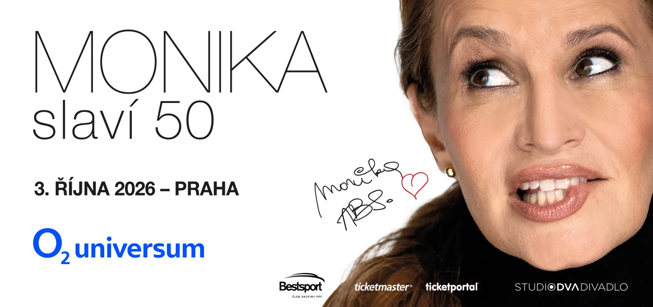 Monika slaví 50 let – Speciální narozeninový koncert zpěvačky Moniky Absolonové. Přijďte si 3. října 2026 do O2 universa užít večer plný skvělé hudby, Moničiny bezprostřednosti a nezapomenutelných okamžiků s hvězdou české hudební scény!