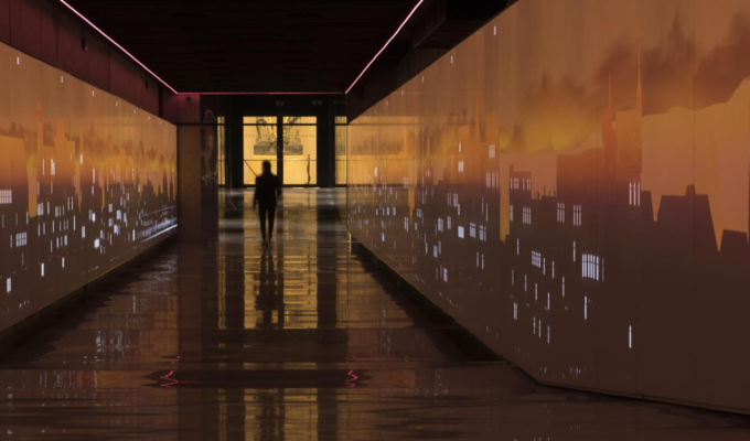 Současně nabízí i pohled na každodennost tohoto prostoru a věnuje se také architektonickému vývoji tohoto místa, od 19. století po soudobé změny. Pro dostatečně autentický zážitek bylo potřeba spojit nejmodernější audiovizuální technologie s úctyhodnými technickými parametry. Chodba je v délce 56 m po obou stranách pokryta spojitým obrazem s plochou bezmála 270 m2, na kterou promítá celkem 38 laserových projektorů se zrcadlovými objektivy s ultra-krátkou projekční vzdáleností.