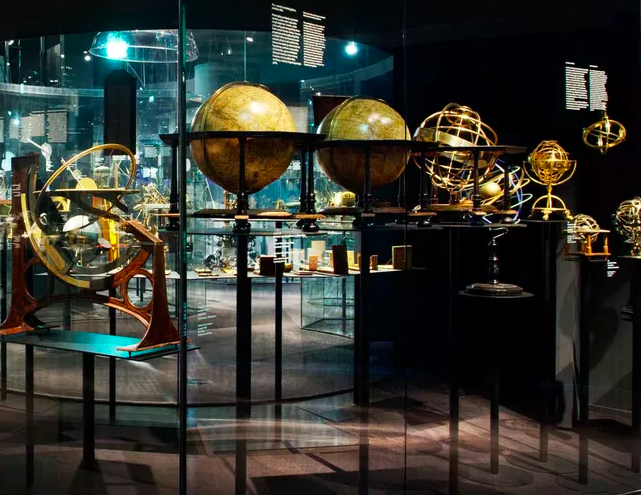 V její první části je představen vývoj oboru prostřednictvím médií. Animované filmové příběhy přibližují a dokreslují měření astronomickými přístroji. Exponátová část předvádí více než dvě stovky zajímavých přístrojů z 15. až 21. století včetně hodin, sextantů, dalekohledů, teodolitů a mnoha dalších. Kromě originálů jsou prezentovány demonstrační předměty, díky nim má návštěvník šanci vyzkoušet si měření v praxi. K názorným ukázkám patří funkční modely jako jsou sluneční hodiny, astroláb, kvadrant, dalekohled a planetárium.