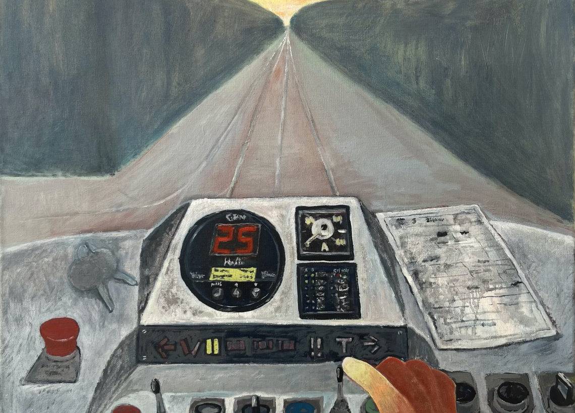 Výstava čerpá z autentické zkušenosti autora, který se rozhodl vzdálit od umělecké scény a stát se řidičem tramvaje. Vstoupil do světa předpisů, jízdních řádů a mimořádných událostí, kde rytmus určují směny, koleje a návěstidla. Autor představuje sérii olejomaleb, kde se kabina tramvaje během dlouhých hodin jízdy mění v pozorovatelnu.