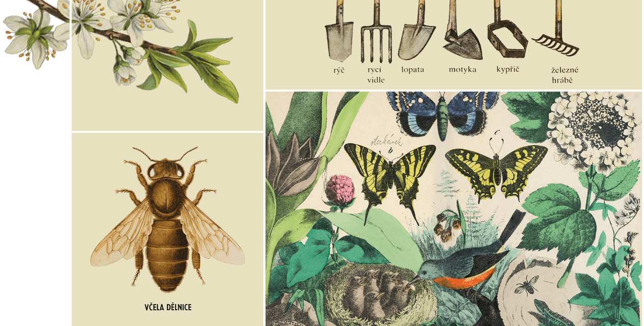 K vidění jsou jak velkoformátové reprodukce nástěnných školních obrazů, tak fotografie školních zahrad a sadů, nalezené v různých archivech. Bohatě obrazově pojatou výstavu doplňují interaktivní prvky. Návštěvníci se seznámí se dřevem ovocných stromů zrakem, hmatem i sluchem, dotknou se nejběžnějších druhů obilí, vyzkouší lehkost a krásu hedvábných tkanin, nebo na vlastní kůži zažijí, jak se cítí včelka v buňce v plástvi.